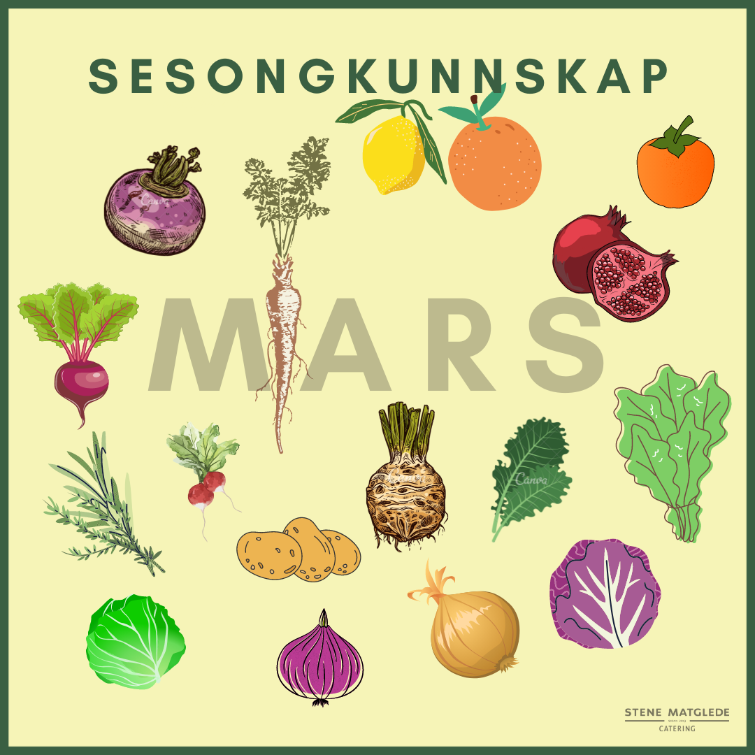 Sjølv så har eg alltid alt dette i bakhovudet når eg skal lage til menyar til kundene mine gjennom året, og eg følger med på sesongvariasjonane til andre landbruksvarer og sjømat òg.